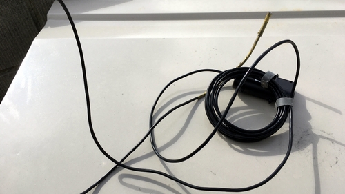 この前届いたフォグランプ。一応点灯試験をしておこうかな、と。前回のヘッドライトはそもそも車体側の接触不良が原因と思いますが、点かなかったので念のため確認です。 このフォグランプはとってもシンプル、ホワイト、イエローなんかの切り替えもないし、ハイローの切り替えもないです。 ほんと単色のイエローが通電すると点くだけの仕様。赤黒のコードが点いているだけ。お、コードの端部は被覆がなく、芯線がむき出しになってます。これは好都合。 自分のバイクには工具レスで充電できるように、充電ポートを増設してあります。ここに配線を差し込んで端子に触れさせるだけでランプは点くはずです。 配線を充電ポートに差し込んでみると、おー、きれいなイエロー。よくあるビームでスポットを照らす、とかじゃなくて散光してくれて広い範囲を照射してます。イメージ通り。照度、輝度とも銀ギラ銀じゃなくて、落ち着いていてOK。 サブなんだから目立っちゃダメ、と思うんですけど。フォグ増設でいろいろ調べてると、眩しいフォグを左右対称で2灯付けるのが流行りみたいで。 そういうサイトの事例をみると、増設フォグ2灯のビームスポットのほうが目立って、なんか後付け感がパない、って感じたけど、そう感じるのは加齢なんでしょう。 まあ、自分はこのくらいの仄暗さがしっくりきます。光源としてはイメージ通り。あとは取り付け方法の検討です。