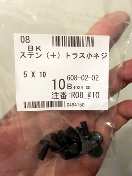 手持ちのビスでちょうど合うのがなかったので、ビス、ボルト専門ショップから購入しました。10本セット。それが届いていました。これくらいあると安心です。