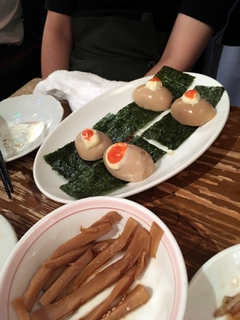 前回来たときは7時前だったので空いていましたが、今回は2次会の時間帯だったので結構混んでました。またひわいなものをオーダー。崩れてます・・・。