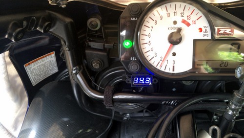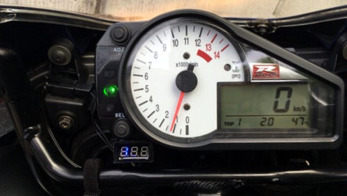電圧計を再度両面テープで貼り付けてエンジン始動。