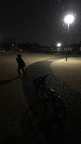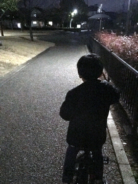 とうことで、また寒波が来てますが、今日も夜の公園に。火曜日に下の子の自転車が届くので、この週末が最後のレンタル自転車での練習です。