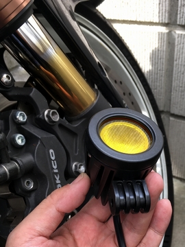 どれくらいオフセットしないとダメそうかは現車で確認です。カラーはイエローをチョイス。爆光とかそういうのはいいです。ビームっぽくないほうが好みなのでこの仕様。逆にイエローのほうが点灯してないときのビジュアルとしては機能美含め美しい気がします。