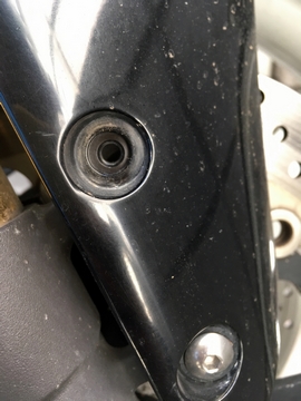 今回発掘したスペーサーはもともと首下長さも少し長いし、これから探すけど、小径ワッシャーをかませると、さらに首下長さが純正より長くなる方向に行きます。ここが長くなるとその分、カウルとスキが出てくるのでカウルの締結、ガタに関してはよくない方向です。金属にもなるし、ここのスキ調整用にはゴムかプラスペーサーが良さそうです。