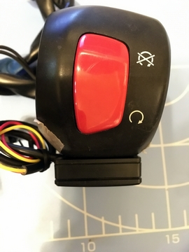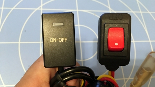 買っておいてなんだけど、やっぱり普通のトグルスイッチにしようかな、と。防水スイッチじゃないのでここだと雨に弱いです。小さなトグルスイッチも防水仕様じゃないので、それはそれで取り付け箇所を探すのが厄介。何度もハンドルスイッチをながめて、現車のハンドル周りの写真も見直して検討してますが、トグルスイッチだとがっちり固定したいのでなんらかのブラケットが必要。良さげなのがないので、作業が進まないです。