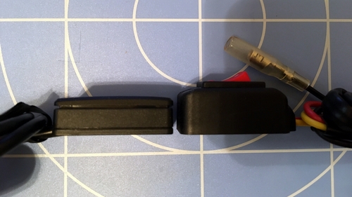 でも、このグリップヒーターのスイッチ、厚みがありすぎ。平面サイズはなんとかハンドルスイッチの平坦部に両面テープでくっつけれそうでしたが、とにかく厚すぎてだめ。