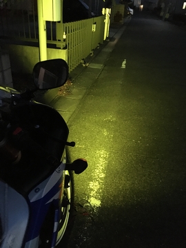 スポットじゃないので、きれいに散光してくれてます。前から見てもハイビームみたいに目に飛び込んでくる感じではないですが、やっぱり調整しておきます。