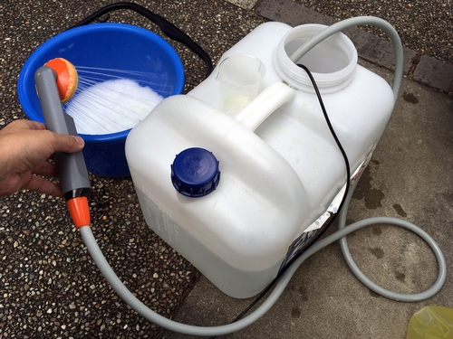 あいかわらずの弱さ。洗車には圧倒的パワー不足ですが、素手よりはいいかな。お湯だし。柄付きスポンジでラフに洗車。軽く砂が落とせればいいです。