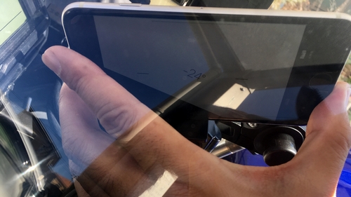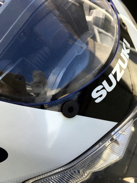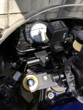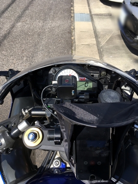 GoProとスマホサンシェードを取り付けて、乗車ポジションから各部の視認性をチェック。スピードメーターOK。ETCインジケーターOK。タコメーターはこの写真だと全部覆っているように映ってますが実際は外周付近は見えるので針の動きは見えます。