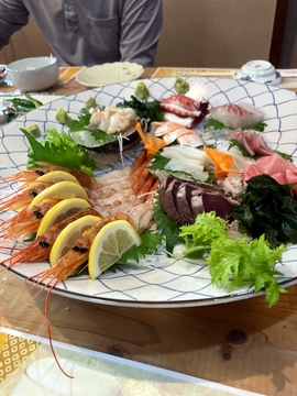 席に着くと、おー、お刺身たっぷり。基本、年齢層が高いお店ですが、職場の若手に予想外の好評。リピしてます。