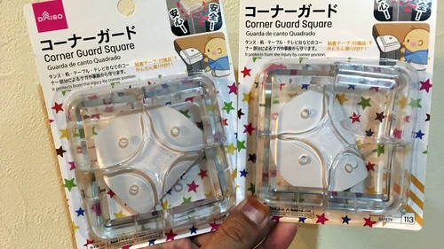 コーナーに両面テープで貼る保護用品。乳幼児がテーブルの角なんかに頭をぶつけた時に、怪我したりしないようにする商品。