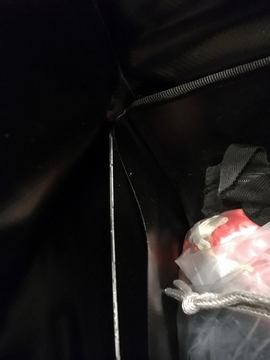 作業性は追々でもいいんですが、ここはやっておきたい、というのがこのバッグ内の型紙のエッジ部分。これがバッグの生地に強く当たってます。