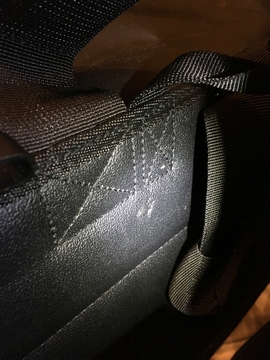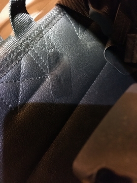 今回ツーリングに使ったサイドバッグ。タンデムシートに設置したボートを固定するためにインシュロックをしていたんですが、それの鋭利なバンドカット部とバッグが接触していたみたいで抉れが。触れないように確認してたつもりだけど、走行中に動くんでしょうか。