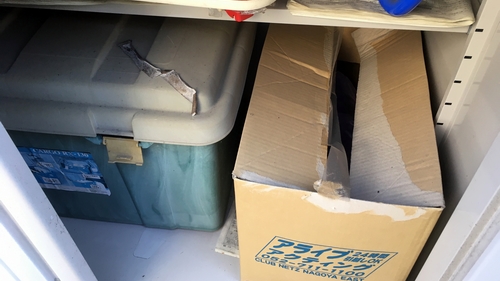 勝手口裏にある呪物倉庫、物置を多分10年以上ぶりに開けてみます。このコンテナボックスの中にバイクとかクルマ用品を放り込んでた記憶があります。