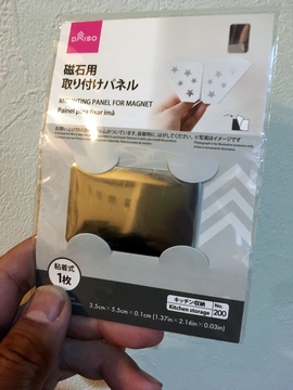 スチール板をカットするのは大変なので、調べてみたら100均にマグネット貼り付け用金属プレートみたいなのが売られてる情報をゲット。