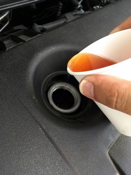 そうだ、自分のクルマにミリテックを半量追加しておこう。