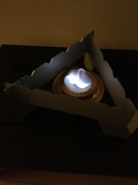 その火をみていて、なんとなく試したいと考えていたアルコールバーナー。1000円だったのでゲットしてみました。