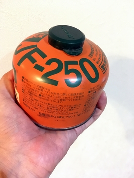 今使っているバーナーもかなり小さくてコンパクトです。それ自体は小さいんですが、ボンベがでかいという。これ、中身が減ってくると心配になって2個持っていくんですが、そうするとかなり邪魔です。
