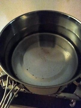風もない屋内なので風よけは立ててませんが、思ってた通り火力は強くないです。これは沸くのか?