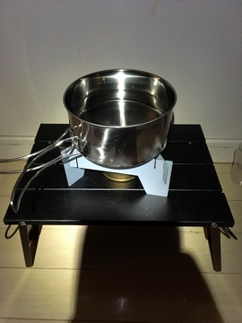 キャンツー用バーナーとしては、ホワイトガソリン、ガスときて、アルコール。だんだん火力が落ちてきてる気がします・・・。