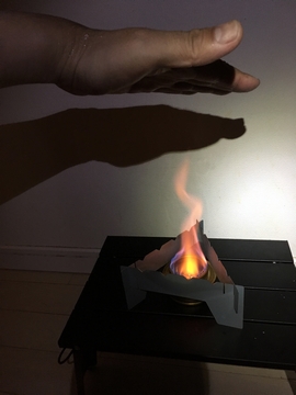 あとは100mlでどこまで燃え続けてくれるか。説明書には燃焼時間約25分とありましたが、もっともっと燃えてくれました。やっと鎮火。