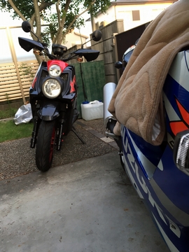 金曜日だったので6時前にあがりました。なんとか渋滞になる前に帰宅。まだ外は明るいので少しだけバイクをいじります