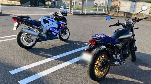 駐車場で座り込んで、缶コーヒーを飲みながらしばしバイク談義。
