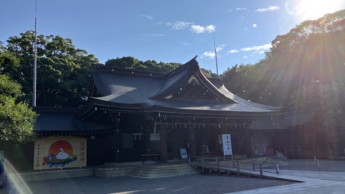 一緒の彼は御朱印帳持参でしたが、窓口はクローズ。境内の掃除をされていた神職の方がいたので聞いてみたら御朱印は8時半からのよう。今日のところはあきらめです。