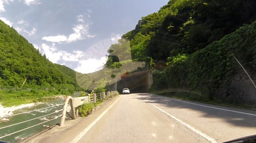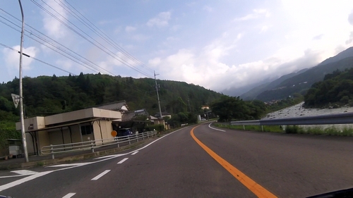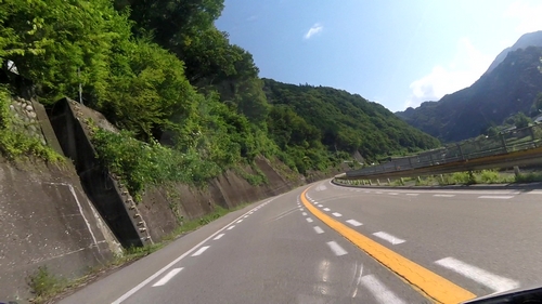 この抜け道が大正解。川沿いの快走路。幸い、前を行くクルマたちも慣れたドライバーたちでハイペース。確保された道幅、良好な路面、ヘアピンなしルートなのでハイペースです。これはありがたい。ストレスなく走れます。