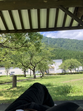 東屋に移動。腰を下ろしてリラーックス。