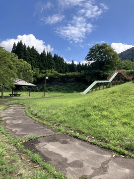 道の駅をうろうろしてたら、あった、あった理想の休憩所、東屋。道の駅の裏は公園みたいなエリアになってました。