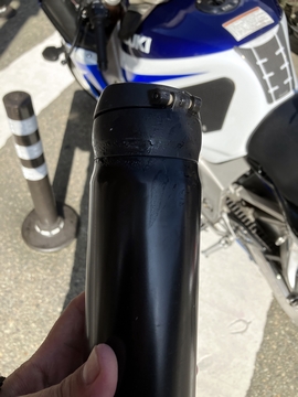 ヘルメットを脱ぐ、うわ、髪の毛びしょびしょ。やっぱりジェットヘルにすればよかったかな。内装を洗濯したので、こっちが快適かも、と期待したけど汚れと換気性は関係なかったか。