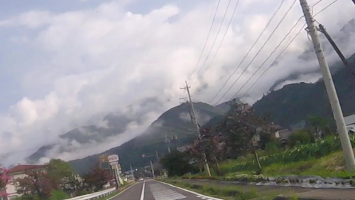 画像はとれなかったけど木曽川を通過したとき、川面からおびただしい水蒸気、霧が沸いていてびっくり。こんな高い気温の朝なのに飽和するほどガンガンに蒸発してる?と思ったら、目の前の山も絶賛蒸発中。すげー水分。こりゃあ蒸し蒸しするはずです。