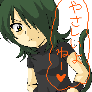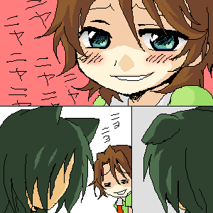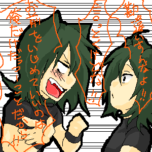 仔ハレを描いてみた。仔の方がよりにゃんこですよねーwww目が大きくて可愛いんだよwwww…実際は自分が生き延びるために同類を殺してますけど ね☆(☆つけて誤魔化すなwww)にしても…こないだのアレルヤと合わせて描いてみたんですけど、台詞と表情があまりにも合わなすぎるという罠(なーいwwww) 本当はコレ、一昨日あたり?にUPしようと思ってたんです。アレハレの考察も書いてたんです。でも… 日記間違えて消しちゃったんで考察抜きで絵のみうpwwwwwww日記消すと凹みますよね…orz徐々に今までのアレハレの考察でも書いていきたいなー・・・ない頭を絞って考えてみたい。…愛してるからな!!!!!(卯翠自重wwww) ふー… にしても本当コレ…台詞と表情合ってないなー・・・ うん、こっちのが合ってる(笑)他のキャラもぼちぼち描いてみたいな。