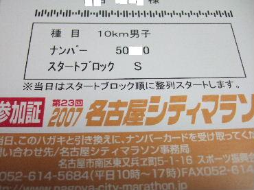 今朝の体重 71.4Kg 4日間走っていない割りに体重が増えていないのが嬉しいな。今朝、手紙が来ましたヒャッフォ~とうとう来ました、名古屋シティーマラソン10Kmですが、頑張って練習してきたので、ちょっと楽しみです去年は、友人のIさんが、病魔に打ち勝ってくれるのが、第1目標、完走が第2目標でしたが、今年は、49分59秒でいいから、40分台で走りたいIさんの事を思い出しながら、今年も頑張って走るぞスタートブロックSって、かなり後ろだよね。だから、40分台って言うのは、おじさんがスタートラインを超えてからのタイム計算ね。明日から、また、頑張ってジムで練習して、体重を70Kg台にして当日を迎えられるよう頑張ります(星 飛馬の目ね) こんな頑張るだけブログでは、なんか、ぜんぜん面白くないブログだな~一昨日の「マットで慰問」も、全く受けんかったしな・・・