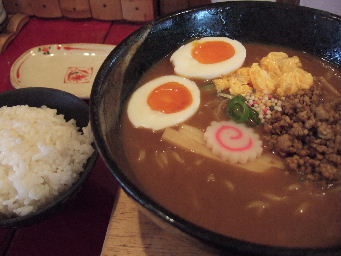 昨日は、走れなかったです。でも、珍しく朝、早起きして6Km走りました。大会用のシューズじゃなくて、普段履きにしてるランニングシューズで走ったら、もう、クッションが、ヘタってて、アスファルトの衝撃で足が痛いです走った後の今朝の体重 73.1Kg 突然ですが、カレーの吸引力というか、魔力って強烈ですよね。カレーが食べたいと思ったら、他の物では代替にならない。吸引力の強い彼を食べちゃったら、ヘなちょこな彼では満足できないのと同じでしょうか鼻腔へ抜ける、誰もが知っている「あの」カレーの刺激的な香彼の刺激的な行為で、胸がキュ~ンってなるようなもんでしょうか?カレーを食べたいと思うと、カレーライス、カレーうどん、カレーラーメン、カレーパンの呪縛からは、逃げられないです。お好み焼きが食べたと思っても、寿司もいいし、ラーメンでもいいし、丼物でもいいか~って、考えがふらふらしますが、カレーには、そういうふらつきが起きないです。もうカレーで頭がいっぱい。恐ろしい彼です。彼のテクからは逃げられない。「こんなふしだらな女になっちゃいけない」って、心は拒否しても、「・・・う、うなじをアザが出来るくらい強く噛んでください・・・」って、体が求めちゃうんですねラーメンの前振りに、こんな事書くブログは、おじさんのブログくらいだろうな~玉響 刈谷店 刈谷市中手町6-705 ここのカレーラーメンは綺麗です。カレーって、ウ○コか、ゲ○に似てるけど、ここのカレーはそういう物を連想しない。(普通、連想しないって)ふわふわの溶き卵(冷たいのが残念だね)辛味の強いミンチ(挽肉だけじゃなくて、筍?しいたけ?何か混ざっていて、食感も良いです)可愛い花アラレ(って言うのか?)しゃくしゃくのメンマトッピングの塩味のうで玉子熱々のルーに絡まった中細麺火傷しそうなのに、フーフーハーハー言いながら汗かいて一気呵成に食っちゃいました〆は残ったカレースープに御飯を入れて、うで玉子をぐちゃぐちゃに潰して、むぐむぐとかき込みます。ふ~~~、心も体も大満足
