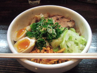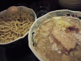 昨夜走った距離 75分10Km 今朝の体重 72.5Kg昨夜、家内は、子供が小学生の時、スイミング倶楽部で一緒だった奥さん達と食事会に出かけてて、おじさんの晩ご飯が在りませんでした先週もそうだったような・・・こんな時しか行けないラーメン屋さんへ豚そば ぎんや 名古屋市北区金城町2-57-1 おじさんの、喜多楽 鶏白湯白えびつけ麺は当り前ですが、麺が旨い でも書きました、携帯サイト「超らーめんナビ」のコラボ企画の、二軒目です。こちらは、京都の「しゃかりき」率いる関西軍で、名古屋の此処と、大府の晴れる屋と組んでボリューム満点の「二郎系つけ麺」を出してます。 ・・・突然ですが、間寛平って、凄いですよね。上の行までは、日曜日の午前中に書きました。ここからは、日曜日の午後4時に書いてます。その間、ジムで、トレッドミルで走りながら、間寛平のテレビ見ました。サハラマラソン245Km完走の話しです。TVの企画で、どんなギャラ貰ってるか判りませんが、一週間かけて245Km走るんです。おじさん、思わずウルウルしちゃいました。日曜日の夜中にまた、書き始めてます。この二つの丼、同じ大きさです。片方に麺が400グラム入ってます。片方はつけ汁です。汁の中には、蒸し煮にされたキャベツとモヤシと、100グラムのチャーシュウが入ってます。つけ汁の上には、背脂と、七味と、ニンニクが乗ってます。こんなに厚いチャーシュウだよ麺は、ちょっと期待外れでした。この麺、少なくとも、茹で立てを水で〆て、もう一度温めた麺では無いと思う。誹謗中傷するつもりはありませんが、食べた感じは、ちょっと前に茹でた麺をもう一度湯煎して温めた麺のような感じがします。茹でたてのムチムチ感が感じられないです。歯応えがいまいちです。でも、麺400グラムって凄いです。おじさん、限界でした。ちょっと飽きました。でも、おじさんの隣のお兄さんは、400グラム食べた後に、替え玉って、麺300グラム追加してましたそんだけ麺が美味しいんだから、おじさんが茹で立てでは無いと思ったのは、間違いでしょうね。ら・けいこの醤油だれっぽい汁とか、麺の太さを思い出しました。麺の弾力はら・けいこの方が楽しかった気がします。でも、ここの居心地のよさは素晴らしいですね。並んで待つ以上の満足感を、客に与えてくれます。と言いながら、おじさんは、もう並んで待つのは嫌ですが、他にも美味しそうなラーメンがいっぱいあるお店です