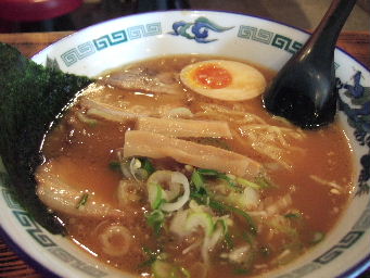 昨日走った距離 75分で10Km 今朝の体重 73.6Kgロッククライマーに成り損ねて、足の骨を折ったバーテンダー、KWI君のお見舞いに、常滑市民病院に行きました。大リーグ養成ギブスをはめてもらって喜ぶ、KWI君の図もう、酔っ払って、スパイダーマンの真似して、壁登っちゃアカンヨ普通の子は登れんで で、先回、お見舞いに行った時に、市民病院の近くで見つけたラーメン屋さん。一見渋そうに見える、安モンの割烹屋さんみたいな造りのお店です江戸の侍屋 茶屋亭 常滑市新開町1-98-4 変わった名前の由来も、壁に書いてありましたが、長いから読まんかったです中華そば700円、醤油味を注文。本当は、つけ麺が自慢みたいです。あらら、海苔が倒れて、お顔をあんまし見えませんネギの散らし方が雑ですね。豚骨醤油ですが、魚介系の香もしますが、どちらの香も強くないです。脂も浮いています。濃度的にも濃いと思うんですが、意外と飲みやすい。これなら、入院患者が、常滑市民病院を抜け出して、食べても、高脂血症にはならないかな?麺は、中細縮れ麺です。加水率は低そうですが、ちょっとおじさんには柔らかいかな。煮玉子も、メンマも薄味です。第一印象の、豚骨の濃厚なイメージに反して、全体に、マイルドな構成で、マニアっくじゃない人にも好感をもたれるかも なんか、癖になりそうな味です。KWI君がもう少し、入院しててくれると、通ってみたいお店です