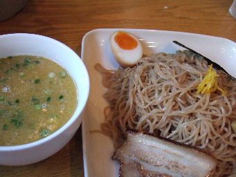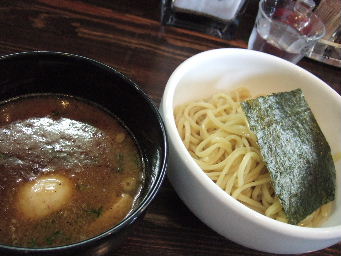昨日走った距離 80分で11Km 今朝の体重 72.1Kg75分走るのはなんとか成るけど、80分は飽きるな~ Sには辛い時間そのもので、全然辛さが快感に成らん 4月11日以来2回目の訪問つけ麺舎 一輝 岡崎市法勝寺町字荒子54-2 午後1時前、満席 入ってすぐの、カウンターの端っこに座れた先回、初めての訪問で、迷った挙句に限定品を頼んだので、今回はつけ麺元味を、トッピング全部のせ、麺大盛り300グラムで注文 1200円也けっこうな値段になりました。300グラムの麺が、トッピングで見えませんトッピングが、つけ汁に沈んでる、極っ庵より、豪華に見えて良いですね麺は、ちょっと短めの太麺、むぐむぐと弾力充分つけ汁は豚骨たっぷりに、魚介節系がシッカリ効いてます。でも、甘くて酸味がきつくないから、最後には飲めそうな感じです。ただ、毎回、晴れる屋、極っ庵のつけ麺で言いますが、おじさんは、鰹節そのままが好きじゃないから、節系が鼻につきます椀物のお出しは好きですよ。鰹と昆布が一体となった一番だしのように、何も突出していないのはね残ったつけ汁に、ご飯を入れて貰って雑炊に。もうちょっと熱いと嬉しいな結局つけ汁から、みんな食べちゃってお腹、満腹です~ご馳走様でした。しかし、食べてる途中に、大将が、「今日は、ジョギング何キロしてきました?」って聞かれた時は、ビックリしました。お、おじさんのブログ、見てくれてたんですね~