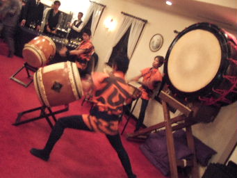 昨夜、とあるイベントに参加させて頂き、そこで、大治太鼓の演奏を始めて見ましたと言うか、聞きましたと言うか、感じましたご存知ですか?大治太鼓を大治太鼓尾張一座此処見てね。江戸時代中期の頃より、尾張地方、ことに愛知県海部郡には、神社の祭礼に五穀豊穣と人々の安全を祈念して、金色に輝く屋形神楽を引き出し、勇壮に太鼓を打ち鳴らしながら村々を引き廻る風習が伝えられてございます。(秋祭り概要は、こちらをクリック)その際に打ち鳴らされます太鼓の打法が、『神楽太鼓』。その神楽太鼓から生まれたのが、大治太鼓のようです。三尺八寸の大太鼓の音が、直接心臓に響いてきます。胸郭が、共振するんですジャズっぽくもあり、アフリカの原始のリズムのようでもあり、また、お母さんの体内に居た時に聞いた鼓動を思い出すのか、何か懐かしいというか、体に、躍動感が湧き上がってくる気がします。打つ人の、筋肉の動きも美しいです。女性や、Mっ気の人は、きっと、この打つ人に、肌をバチで打たれてみたいと思うに違いありませんおじさんも、大太鼓を打ってみたかったです。