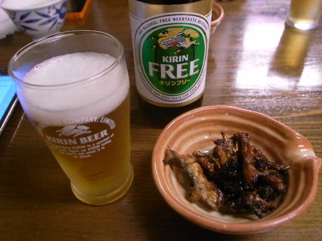 おじさんにも、深夜食堂がでけた、ふふふまだ、二回目だが、ご主人にも、女将さんにも、拒否られていないを頼んだら、「まあ、これでも食べてみて。」と。もう、新物のイクラが出てるんですか皮が柔らかくて、少し小さめだが、いい感じですこういう、素朴な胡麻和えなんかが、「さあ、食うぞ」って勇んだ気持ちを落ち着かせてくれるね。 メヒカリの南蛮漬け 胡瓜とタマネギの切り方が良いな加茂茄子の揚げ出しは、上顎火傷必至の、とろっとろ爆弾この鰈の唐揚げが、素晴らしい今まで一番の鰈の唐揚げだと思う鰈の唐揚げって、よく在りますが、ちゃんとカラッカラに揚がった、から唐揚げは無い。大概、頭か、胸の骨辺りが、サクッとせず、骨が気に成る。反対に、頭や胸の中骨がきちんとサクッと揚がっていると、下半身は身が揚がり過ぎで身の美味しさが無い。コレ、完璧です。頭や胸もサクッ下半身もサクッ白身の美味しさもちゃんと残っているもう、ビールの旨い事ぉ~~~~っネタケースに鎮座していた、釣り物タグ付きのキンキこれは、Almazさんに負けンよう、ワシも、食わんとイカンでしょうもう、皮とその下の脂とゼラチンを、ちゅうちゅう吸いまくりぃの、ぺろぺろ舐めまくりぃの、ちゅぱちゅぱしゃぶりまくりで、もう、唇が感じすぎて、何度イッてしまったことか最後は、当然、「この骨とアラに、チンチンのお湯かけて、お汁にしたいんですけど」とお願い。「昔は、たまに頼まれたけど、今時の人は、そんな事はせんよ。」と言いながら、皿を引き取ると・・・こげな立派なお吸いモンに成って戻ってきました追い鰹のダシが効いて、まあ、なんと上品なお吸いモンに変身ですく~~~~~~ッ旨すぎるペシっと、膝を叩く旨さです四合瓶が空いちゃいましたよ、もう、どうする?こんな、たんと飲んじゃっては~~~ぁ、幸せな時間