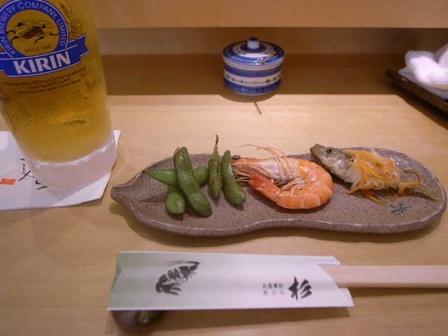 よしながさんと、勉強会の後に、ご褒美を名駅前で勉強会だったので、名鉄百貨店のお寿司屋さんへ探検です魯山、カッコイイ名前に魅かれて来ました。東京で100年以上続いてるお寿司屋の支店でした。まずは、と玉子焼きで、場を繋ぎましょう。 江戸前のカステラみたいな玉子焼きを期待したが、これは、名鉄百貨店の地下の食品売り場から買ってきたなって感じの、甘くてどっしりした玉子焼き、冷たいし・・・予約の電話をしましたら、予約の場合は、コースメニュウか、一品料理の注文をお願いしますと言われました。一人前のお決まりの寿司だけでは、予約は受けないそうです。まあ、百貨店ですから、沢山のお客さんが来るから、一人前の寿司しか食べない人の為に、席を確保して空けて置いては、もったいないという事ですね。穴子の炙りからは、日本酒だね白海老?の天麩羅、サクサクで美味しいです。シャケのカマ焼き白いご飯が欲しくなるが、二人は、糖質制限兄弟だから我慢って、日本酒ガンガン飲んでますが、イイのでしょうか段々居酒屋状態になってきたぞ野菜の焼いたんも注文里芋は、お互いに譲り合い これ、何のカマかな?ハマチは頼まないし、鰤は早いし、鱸かな? 刺し盛りも頼んじゃって、いつ、寿司を食うんだろう?もう、この時点で、お銚子が8本空いてますよしながさんと二人で酔うと、アホな事を思いつくんです酢飯をお皿で注文しちゃいました本当は、「お刺身が残ったので、、コレを残してお寿司を注文するのは、勿体無いので、もし、可能なら、酢飯だけ握って、10個頂けませんか?お忙しいでしょうから、無理にとは言いませんので、出来なければ、酢飯のままでけっこうですので、10個分くらいの酢飯をお皿でいただけますか?」って、店員さんにまあ、散らし寿司だと思えばね 二人で仲良く、一つ皿で食べました~~酔ったな~~~、ウイッ