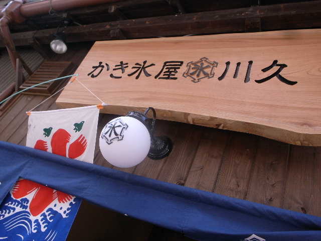 蝉がミンミン鳴いてる間は、かき氷を食おうと思っているおじさん大須の招き猫のそばに在る、かき氷屋さん。なにやら本格っぽい雰囲気が漂っていますかき氷屋川久 名古屋市中区大須3-32-12 元は、春日井にある老舗の氷屋さんで、業務用の氷を卸してる本物の氷屋さんが、今年の四月から始めたお店だそうです。色々な地域の名水を使った氷のようです。満席で、外で待っている間に観察してみると、まず、制服が、田舎モンぽく可愛らしいテイクアウト用のかき氷は500円で、左の機械で作り、幾分、かき氷の肌理が粗くして在るような気がする。店内用は600円で、右の機械で作るが、これが、見るからにふわふわ量は、店内用の方が多いシロップは、業務用の濃縮還元ジュースを元にしていて、かなりの種類が有り、販売もしているようだ。暑い中、待つこと10分、奥のイートインに案内されました。混んでいても、相席はしないようです。店内用には、シロップ自家製の、本日のスペシャルメニューとして「ミルク添えいちご」850円があり、ついついコレを注文濃厚なシロップは、色鮮やかで、イチゴのツブツブが入り、控えめな自然な甘さがイイです見てるうちに、自らの重量に、くしゅ~~~っと潰れて、萎んでいきそうな、ふわふわ感が判りますか?先日の「ささやなぎ」のふわふわも凄かったですが、こちらも、なかなかのモンです。別添えのミルクも、練乳のようなクドイ甘さがなく、優しい味わいで、アイスクリームというよりラクトアイスのような感じです。これで、せんじが食べてみたいです。やっぱり、量的に多いのと、エアコンの効いた店内では、段々身体が冷えてきて全部は食べる事が出来ませんでした大須に行くチャンスが在ったら、再訪したいお店です。