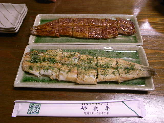 我が家って、鰻が好きなんだな~~また、やま平に行ってしまった。勿論、本当に鰻が好きなのも在るけど、実は、刈谷で外食の選択肢が少ないってことも起因してます。昔は、刈谷に、天手古舞とやま平が在って良かったと言ってました。が、糖質制限を始めてから、天手古舞に行く回数が激減ついでに、味噌煮込みの権兵衛さんも、行かなくなった幸寿司本店は、鰻や蕎麦みたいに、しょっちゅうは行けませんやっと、念願の蒲焼と白焼きですこれで、をやっつければ完璧ですが、今回も、ノンアルコールビール初めて白焼きを注文しましたが、山葵醤油かと思いきや、生姜醤油か、青海苔と塩の選択でした。青海苔と塩の方が、さっぱりしてるとのお店のお薦めで、こちらに青海苔って、歯に張り付くと、間抜けなんでイヤなんですが、これ、確かにさっぱりしてて、海苔の香りが良くて、塩とピッタシで、美味しいですさくさく食べられます。最後に一口、奥さんからご飯を貰って、鰻丼の気分も味わって、ご馳走様。次回こそ、息子に運転させて、日本酒を蹴飛ばすぞ しかし、鰻って、関東と関西で、背開きと腹開きに別れてるし、直焼きと、蒸し焼きとか、分かれてるし、鰻も、困るだろうね。何処に派遣されるかで、調理のされ方が違うんだから。最後は靖国で待ってると言いながら、覚悟が定まらないよね。切腹を申し付けられるか、背中から不意に切りつけられるか。武士だったら、一大事です女性なら、下着姿にされた後、ブラジャーから外されるのか、パンティーから脱がされるのか、恥ずかしがり方が違いますよね?しちゃってから、お風呂か、お風呂の後にするのかも、困るだろうな~~おじさん、鰻じゃなくて、本当に良かった
