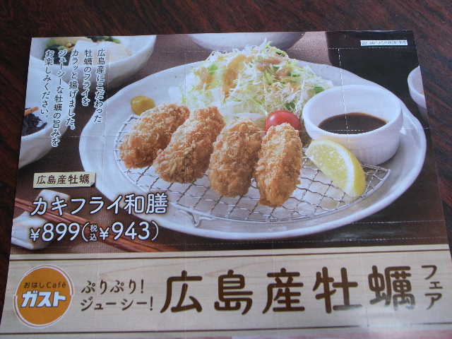 昨夜、雨が降って、ジムに行く気にならず、一人で、在り合わせの物で、晩御飯を食べていた。まさか、そんな夜に、腹ぺこ歯医者さんが、近所に居たなんてどの料理も似通った味のする不思議な四川料理店 : 昇龍 刈谷店[食べログあ~~~、寂しい悲しい友達だと思っていたのに、なんて水くさいしかも、一人で、TVは面白くないんで、テーブルに在った広告を見ながら食ってました。ふ~~~ん、カキフライが四つしか付かなくて、943円は高いよな~。広島だからか?おじさんは食えんな単品で、牡蠣フライ追加出来るんだろうか?おろしハンバーグと、牡蠣グラタンで733円か~、コレなら許せるけど、おじさんは、牡蠣は、やっぱ、フライだな。大須のすず家に行けば、食べられるかな~~。そういえば、ケイさんと、カキフライをポン酢と大根おろしで食べましょうって、約束したなコレコレコレだよハンバーグ&カキフライ 549円おじさん、コレに決定だね。B級ネタとしては、イイじゃないおっななさ~~~ん、唐揚げ149円ですよ牡蠣フライ単品は幾らなんかな~、在るかな~。牡蠣フライの写真を見てたら、キャベツのソースがけが食べたくなり、山盛りキャベツを切り始めて、改めて、キャベツをワシワシ食いながら、牡蠣フライのメニューに見入るおじさんビールのお供に、よさげだが、こんなん食ったら太るしな・・・・・・なんて考えながら、晩御飯を食っとりましたよ。そうして、今朝、腹ぺこ歯医者さんの日記を見たら・・・最近のガストはなかなかレベルアップしています。 : ガスト 萩野通店もう、笑った、笑った