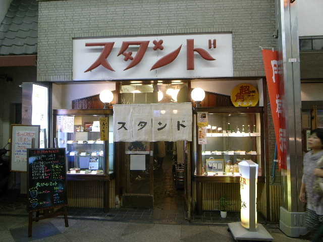 いや~~~、京都は奥が深いと言うか、懐が広い。おじさんは、どちらかと言うと、奥は、狭い方が好きです奥の細道って言うでしょで、道は、凸凹してると、尚、具合がイイと思いますです、ハイ具合良さ気な雰囲気が、プンプンしてるお店です。京都に行くと、いつも前を通って、入りてぇ~な~って、よどを垂らしてました ショーウインドーは大事ですしかし、暫し、お店の前で、眺めておりましたが、一人として、ショーウインドーを見ない判ってても、皆、ショーウンドー、見てあげようよ見ちゃあダメって言うけど、本当は見てあげた方が、気分が高揚します 少し前になりますが、勉強会を早めに切り上げて、突入しちゃいました。何でも、そうですけど、初めては、焦っちゃって、入りづらい入って、イイですか~~~~ 左に四人がけくらいの丸いテーブルがみっつ、よっつ。満席です。一人で、定食を食べている人もチラホラ。カレーライスと焼そば?と、煮魚を食ってる大柄な客も居ます。中年アベック(カップルではなく)が、ポテサラと、オムレツをアテに、ビールを刺しつ刺されつ、イチャイチャと男が女性の肩に手を回しちゃってるんですよここは、キャバクラじゃないってえのそれ以上の、刺しつ刺されつは、他所でしなさい、他所でおじさんの真向かいの、おとうさんは、なんか、「あ~~~~、あ~~~~」って言いながら、ビール飲んでます。丸テーブルでは、元気なおじいちゃん四人組が、ガハガハ笑って飲んでます。右の衝立の奥に、巾が45センチくらいの細長~~~いテーブルが1本。その両側に、お客さんが向かい合って座っているから、プライバシーは無いきずし580円と、角のハイボール480円を注文角ハイ薄っ注文表がユニークです。大宮の、昼から飲めるお店でも、こんなん使ってたな~~~~入り口に、会計用に、昔の木製のレジが在ります。その前に陣取った、レジと共に、人生を歩んで来たと思われるご婦人に、写真の許可を貰いましたが、とても、一見の客がカメラを向けるような雰囲気ではありません新参者は、新参者らしく、大人しく、レトロな大人の雰囲気に慣れるのが肝要です。新京極 スタンド の画像検索結果店内の雰囲気はこちらをご覧下さい。