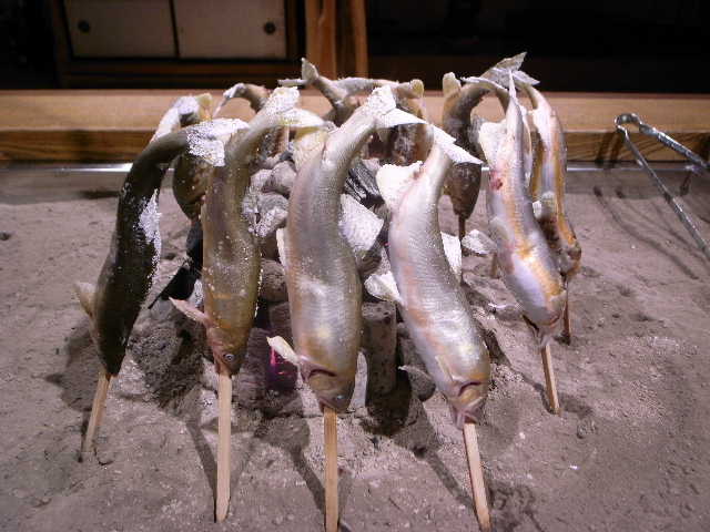 もう、何回伺っているか数えられない瑞浪の柳家さん 三代目の若いご主人と、奥様の優しい気遣いも心地良く、季節の変わり目ごとに通い続けています。案内されたら、既に、到着時間を考えて、じっくり鮎が焼き始めてありました。郡上の大きな尺鮎なんで、時間がかかりますもんね。そうそう今回、おじさんは、同業のSちゃんに誘われて来たんですが、道中の電車の中で、世界の☆を食い歩くN先生ご夫妻や、名古屋の有名レストラン、ガッルーラやシクラメンテの方達にお会いして、ビックリでしたみんな、柳家に行くんだもんいい感じに焼けてきました。思わず、鼻を近づけて香を嗅いじゃいます鮎が焼ける間に、フランチャコルタのサテンで喉を潤します松茸もイイですが・・・サツキマス?もイインですが・・・やっぱし鮎おじさんは、無理に頭や骨は食べないんですが、その代わりと言っては何ですが、それ以外は、徹底的にしゃぶりつくしますコレ、まだ、日本酒飲みながら、ハラワタを舐めます大きな卵巣も、上手に焼きあがって、しっとりほろさく、つぶつぶ、もったり、日本酒がもう、止まりま千昌夫。先代の女将さんが、これまた、懐に抱いて欲しいって思えるお母さんなんです。こんなお母さんの膝枕で眠りたい天然鰻も良いが・・・鮎松雑炊コレに敵うもの無し三杯お代わりしちゃいました~~~次回は、真冬に来るのかな?ナニが出てくるか楽しみです