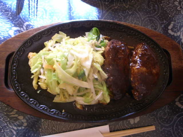 もう、おじさんが、高校生の頃にはやっていた安城の仔馬ハンバーグが2個乗ったWを注文ふわふわのハンバーグと野菜炒めです。鉄板がジュウジュウ言って、デミソースがピチピチ飛んで危険ですキャベツ、ピーマン、タマネギ、もやしの野菜炒め・・・別段、文句は有りませんが、こういう野菜炒めって、おじさん、大学時代の自炊料理を思い出します肉汁たっぷりの、手作りハンバーグです。レアな感じは有りません。芯までしっかり火は通っていますが、それが、町場のレストランって雰囲気で、旨いです。蛋白質と脂と、野菜だけボリューム満点なんで、ご飯は必要有りませんまさに、理想的な糖質制限メニュウです