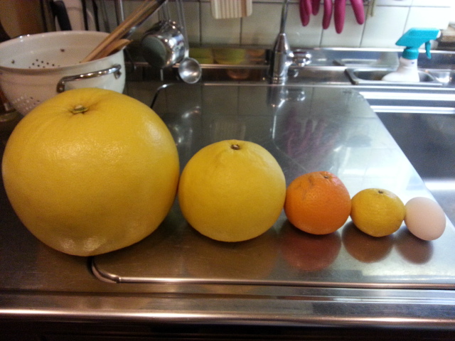 自分で言うのも、なんですが、クライアント様の中に、おじさんの事を、凄く気に入って頂いてる方が、僅かですが、いらっしゃいます。昔からのクライアント様からは、「あんたは、話し方に愛想が無い、冷たい。もう少し、優しい話し方をすると、流行るのに。」と良く言われますもちろんサービス業だと心得ていますが、おじさんのモットーは、お愛想の笑顔で接する事でも、安い金額でクライアント様を惹きつける事でもなく、いかに、クライアント様の「一番の要求」に応える事だと思っています。それと、全ての人に同じ接し方を心がけています。この全ての人に同じ接し方って言うのが、「冷たい接し方」と取られがちです。職場では、友人、親戚、肉親の依頼にも、話し方は同じです。どっかの社長が来ようが、市長が来ようが、同じそれは、後ろで順番を待っている、他のクライアント様が、どう感じているか?からの事なんです。なので、おじさんの事を気に入ってくれるクライアント様は、大抵、肝っ玉母さんタイプです希望に沿うための、こちら側の出来るサービスを、簡潔に説明すると、判らない事はきちんと聞いてきますが、納得すると、「よっしゃ、判った、あとは、アンタに任せる。頼んだで。」って感じです。残念ながら、若くて美しい繊細な女性には、気に入って貰えないそんな肝っ玉母さんからの頂き物。毎週毎に、左から順番に、ダンボールに1箱、2箱と届きました。左から、バンペイユ、二番目がなんとかパール、三番目が清美?四番目が媛小春、一番右は卵じつは、昨日、デコポンも届いてます本当に、ありがとうございます。スタッフ、親族、皆、喜んでおります。こうして見ると、実に変化に富んだ蜜柑達です。品種改良で、ここまで大きさが変わるんでしょうか?お互いを見て、「これは、何だ?」ってビックリしてるだろうな~人間が、こんなに大きさが変わったら、一大事ですよね農場試験場の研究員の皆様、ご苦労様です。どれも、酸味、甘さ、渋み、果汁の量が違って、それぞれが美味しい。個性が美味しい人間も、全ての個性が美味しいとイイのにね。そうすると、おじさんの冷たさも、良さが判って貰えるのに