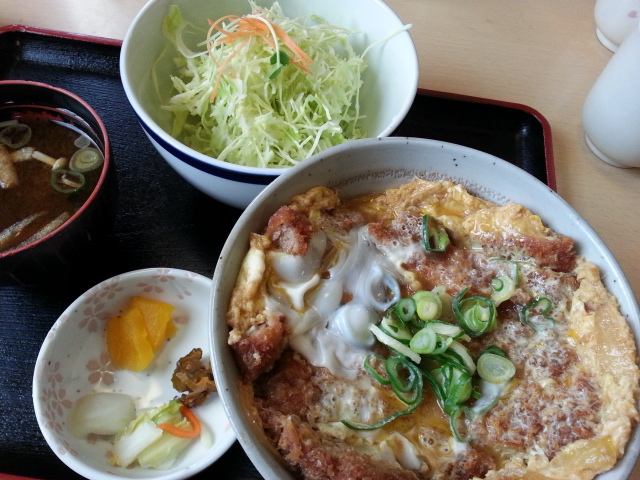 雲丹丼も旨いが、イクラ丼も旨い。じゃあ、雲丹イクラ丼が旨いか?と言うと・・・旨いんだな~~~、コレがじゃあ、雲丹イクラ蟹丼が旨いかって言うと・・・圧倒的に旨いんだな~~翻って、トンカツと玉子はどうか?それって、カツ丼だろ?カツ丼は旨いに決まってますが、では、オムレツの芯がトンカツだったら、どうか?ほらね、一瞬、想像が出来なくて、「うま・・・」まで言いかけて、止めたでしょ?オムレツ定食と思いきや、これが、オムレツの芯がトンカツと言う、「?」な食べ物なんですよ。前回は、ハンバーグのっけオムライスだったんで、ご飯の量が判らんかったけど、この丼飯は多すぎですしかも、おじさんには、ちょっとやわやわの、にゃらご飯おじさん、秀樹感激の、大迫力のオムレツに見えますが・・・・・・中に、肉厚なトンカツが入っているんですゼ、旦那しっかりとしたサクサクだったと思われる、厚めの衣は、玉子のお湿りで、それだけでも食べ応えの在る、柔らかい衣に変身していますデミグラスっぽいソースがかかっているんですが・・・・・・・う~~~~ん、おじさん、悩んでしまいました。トンカツには、値段は高いが良いお味のコーミウスターソースに決まっとるんですが、オムレツはケチャップが好きじゃんねデミソースはその間を取り持つソースなんでしょうが、おじさんには、どっちつかずで、落ち着かない味なんですう~~~~~ん、欲求不満なんです。トンカツを立てれば、ソースをじゃばじゃばかけたいでも、オムレツにソースは、絶対嫌派なんです。しかし、トンカツにケチャップも、ガキじゃあるまいし・・・・・・結局、悩んだまま、在るがままで食べ終わりましたが・・・・・ 若い頃の吉永小百合様とエッチをしてみたい007の頃の浜美枝とエッチがしてみたいでも、二人一緒には、エッチしたいと思わないのと同じでしょうか?
