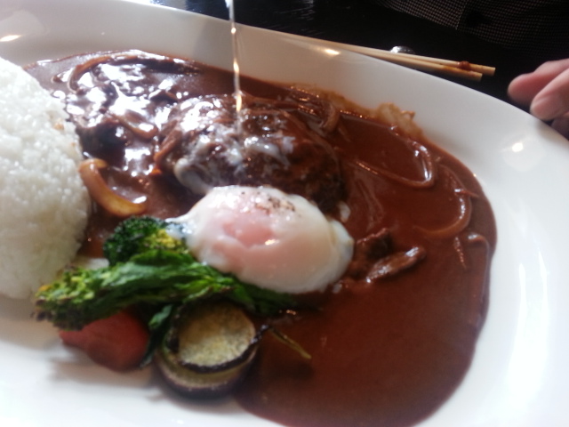 火曜日、ケイさんが、コッチに来るんで、ランチデート行ったのは、又も、おっさん二人には似合わない、オサレなカフェケさんは、ハヤシライスハンバーグに温泉玉子追加。別添えで付いてきた温泉玉子を、ハンバーグの上に乗せて写真を撮ろうとするが、滑落おじさんは、その失敗を見て、ハンバーグの掘削を試みて、くぼ地を作って、投下。掘削のために、スプーンを差し入れた途端、地下水が吹き出るように、肉汁が湧き上がってきました芯は、ミディアムレアのダークピンクと肉気を感じさせる焼き加減そうそう、注文を聞いてくれたおばさんが、しばらく経って、又来て、「オムライスの注文ですが、温泉玉子の追加で、卵がかぶりますが、よろしかったですか?」って、わざわざ聞いてくれましたケイさんが、「この人、玉子大王だから、大丈夫です。」って、初対面の人には意味不明の返事をしてくれました美味しそうでしょう?旨いんですチーズ?の混じったホワイトソースに、海老やトマトの赤、オムライスの黄色と、コントラストが綺麗ですオムライスの玉子の焼き肌に焦げ目も無く、中は半熟で、ケチャップライスに絡んで完璧ただ、やっぱし、おっさん二人が行くお店では無いね